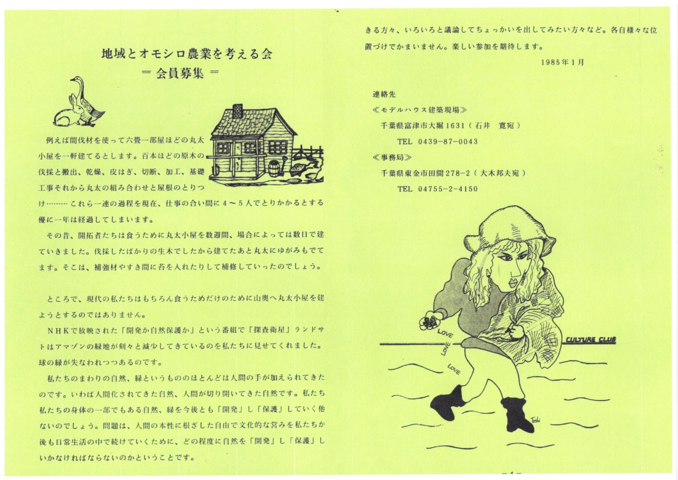 農学会の延長上には自らも実践しようという気運が出てきて、面白い農業を試みてみませんか、というパンフを作り、有志を募りました。